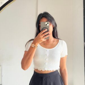 White Ribbed Short Sleeve Crop Cardigan Top