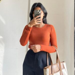 Rust Ribbed Body Hugging Full Sleeve Knit Top