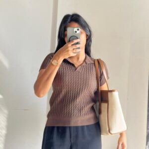 Mocha Cable-Knit Polo Top