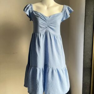 Sky Blue Ruffled Sleeves Knee Length Dress