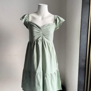 Sage Green Ruffled Sleeves Knee Length Dress