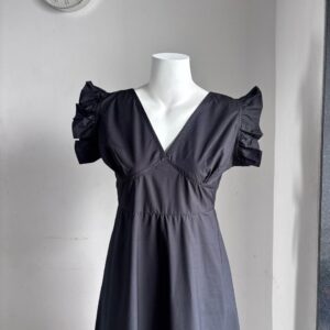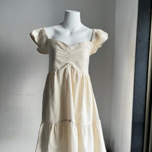 Beige Ruffled Sleeves Knee Length Dress