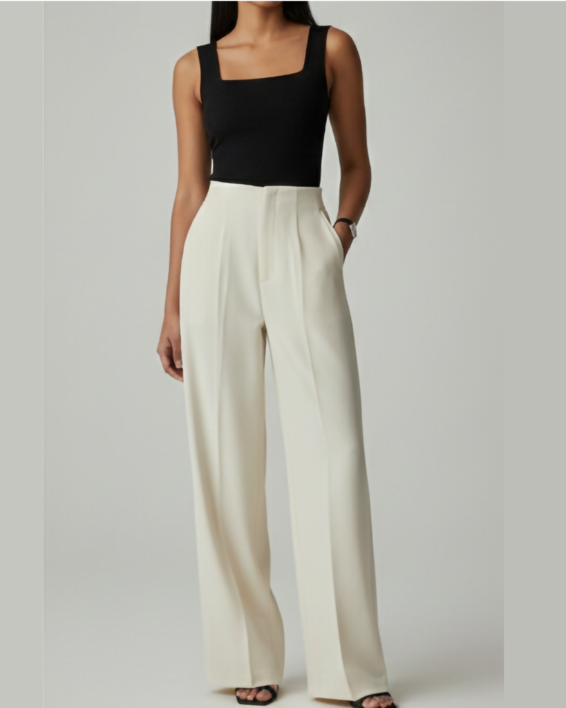 Off White High-Waist Non-transparent Premium Wide-Leg Trousers