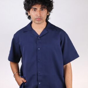 Navy Blue Plain Oversized Half Sleeves Shirt