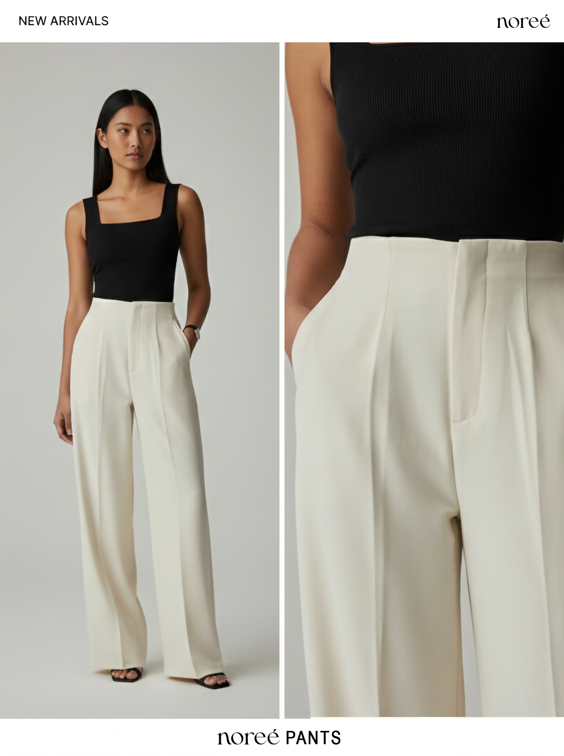 - Waistband: Pleated tailored front